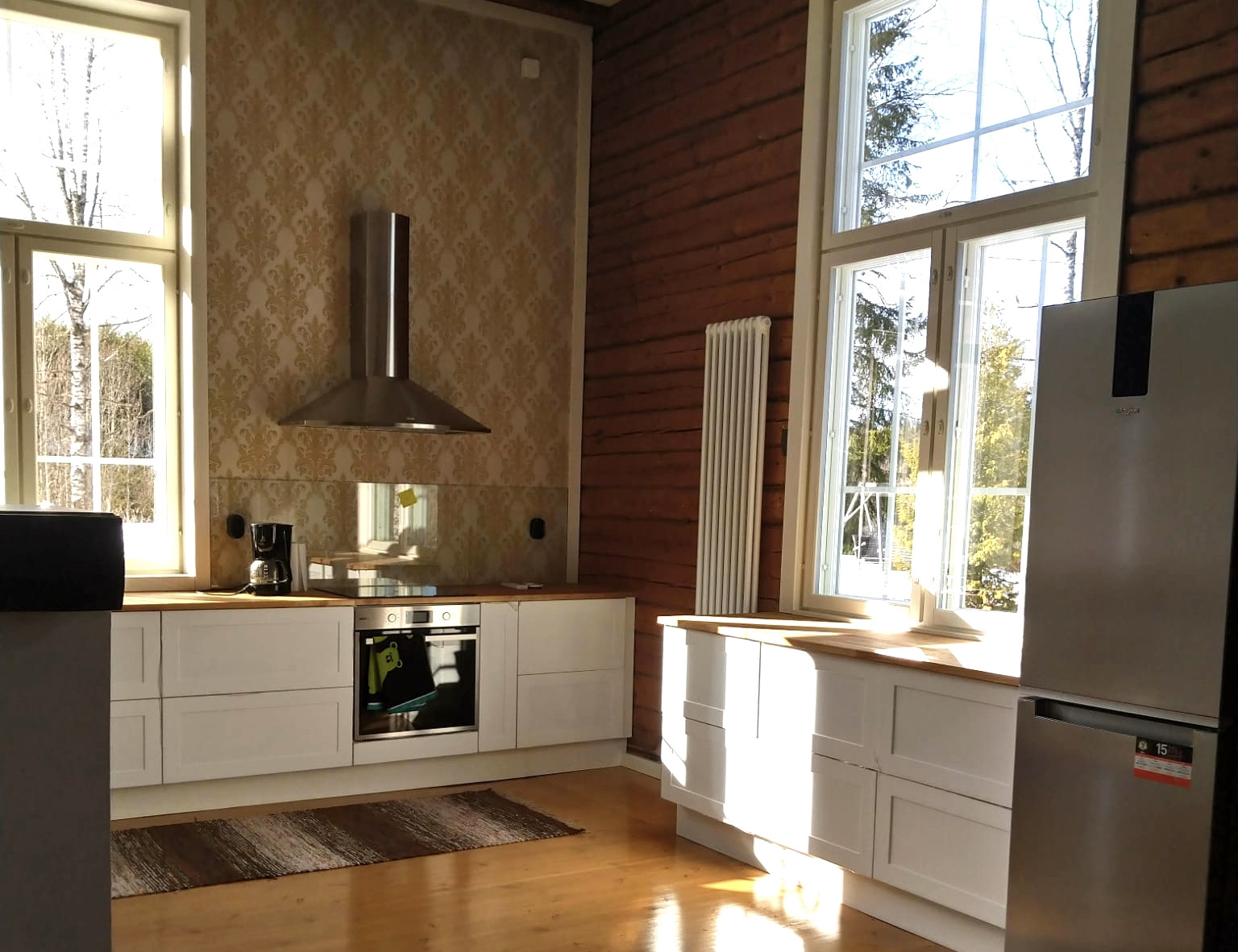 – Kuulimme myymälässä keittiösuunnittelusta, johon tartuimme. Lisäsimme keittiön oheen vielä muitakin hankintoja, kuten eteisen kaapistot, lattia- ja seinälaatat ja kylpyhuonekalusteet. Lappeenrannan Värisilmän yhteistyökumppaneiden toimittamana hankimme myös upean pönttöuunin kamariin, asiakas kertoo.