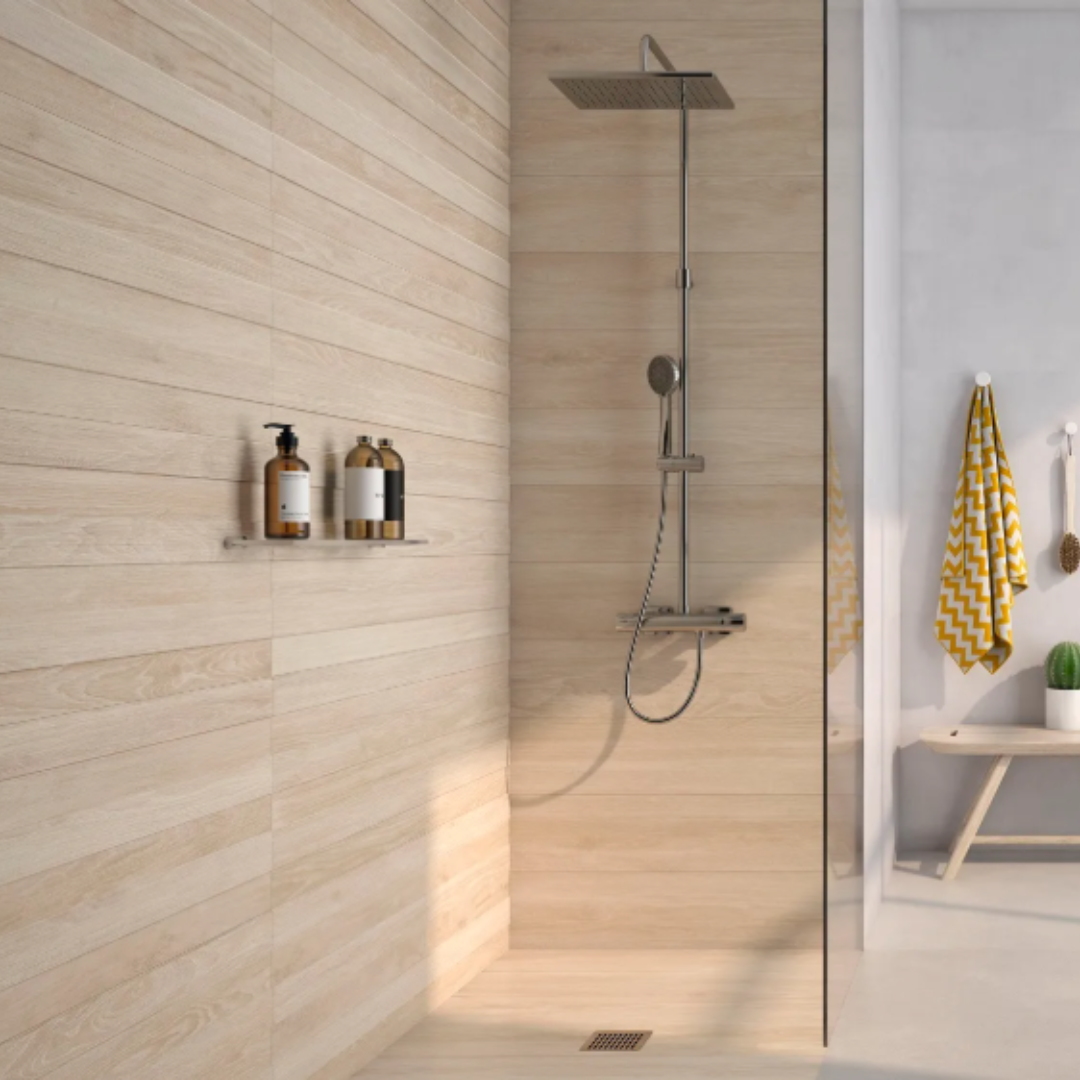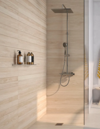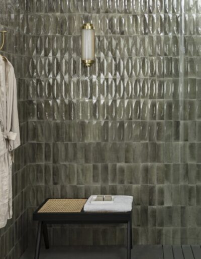 Valkoinen 20×40 laatta taipuu niin skandinaaviseen minimalismiin kuin perinteisempäänkin makuun: Vaakaan asennettunna se on perinteinen ja rauhallinen valinta ja tiililadontana laatoitus tuo kylppäriin elävyyttä ja klassista ilmettä. Vaihtoehtoisesti pystyyn asennettuna laatat antavat kylpyhuoneelle arkkitehtonisen ja modernin ilmeen.